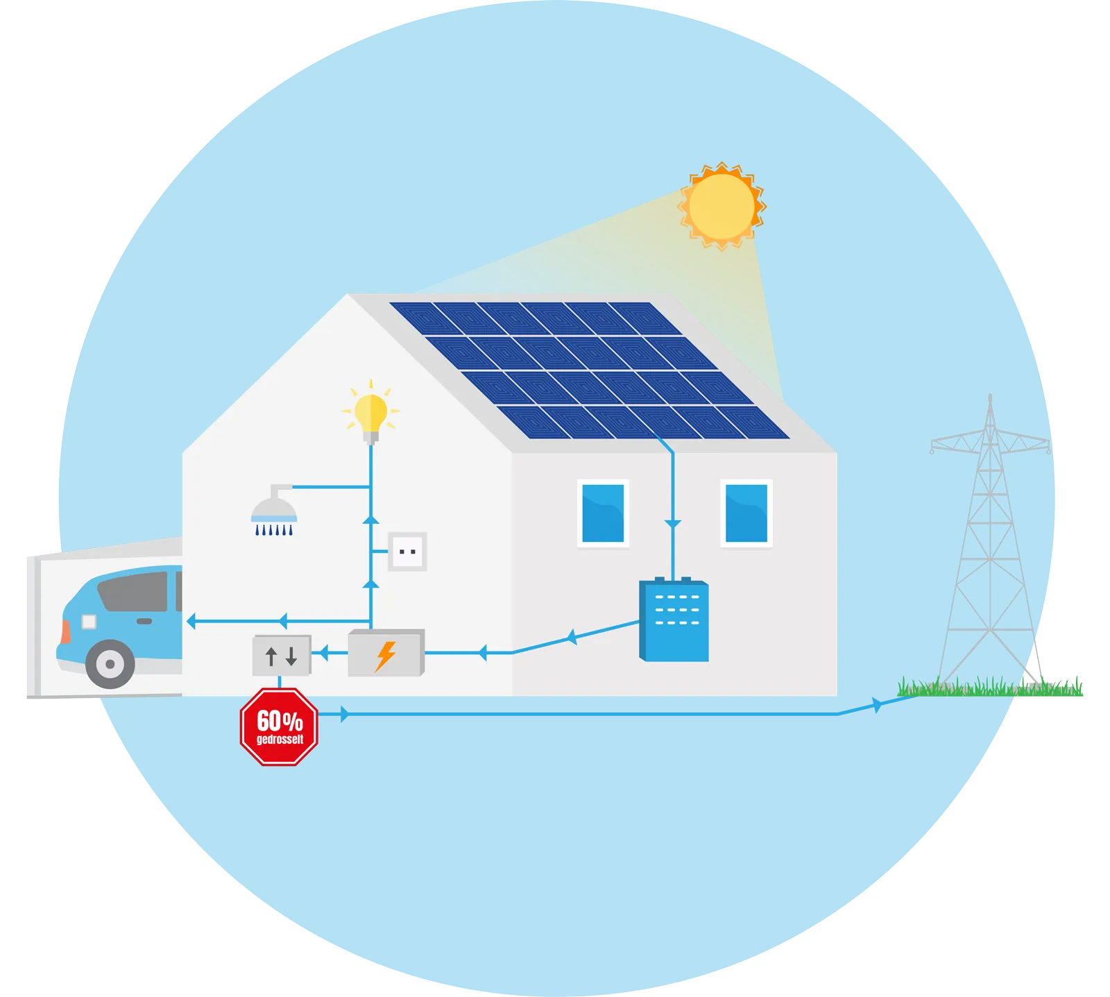 … Netzüberlastungen vermieden werden. Gerade zu Spitzenzeiten kann zu viel eingespeister Solarstrom das Netz an seine Grenzen bringen.